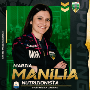 Uno dei segreti dei salesi nella stagione appena conclusa risiede anche nell’alimentazione, una corretta e sana nutrizione infatti favorisce il miglioramento delle prestazioni sul rettangolo di gioco. Marzia Manilia, biologo nutrizionista, ci sarà anche per la prima storica esperienza in Serie A. I presidenti dello Sporting Sala Consilina hanno deciso di affidarsi ancora alla sua competenza, ormai da qualche anno un certezza nello staff gialloverde: