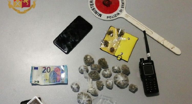I poliziotti lo hanno raggiunto e bloccato in un appartamento dove hanno trovato un altro giovane ed hanno sequestrato uno zaino contenente diverse bustine di marijuana del peso complessivo di circa 30 grammi, un bilancino, un cellulare, la somma di 20 euro e diverso materiale per il confezionamento.