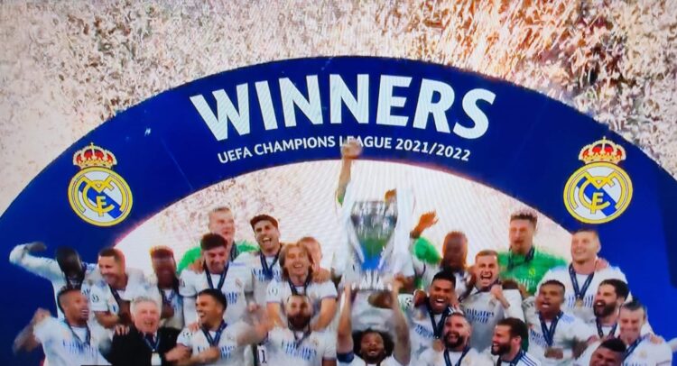 Il Real Madrid batte il Liverpool per 1-0 nella finale di Champions League. I blancos di Carlo Ancelotti, a Parigi, si impongono grazie al gol segnato da Vinicius. Il Real conquista il titolo di campione d’Europa per la 14esima volta e corona un’annata straordinaria, già impreziosita dalla vittoria nella Liga. Il Liverpool di Juergen Klopp fallisce l’appuntamento con il settimo titolo continentale e dopo il secondo posto in Premier League deve accontentarsi di un’altra piazza d’onore in una stagione comunque più che positiva, con la FA Cup e la Coppa di Lega in bacheca.
