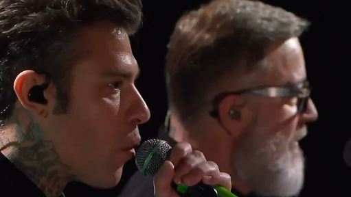 Credito fotografico: L’immagine che accompagna l’articolo che ritrae Fedez e Marco Masini durante l’esibizione di Bella stronza, è un frame della serata delle cover di Sanremo 2025.