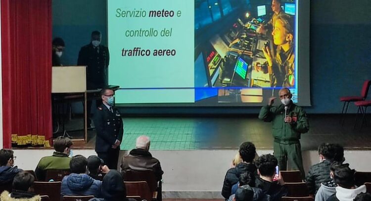 Ieri mattina nell’istituto di Somma Vesuviana la presenza dell’aeronautica militare, rappresentata dal vicecomandante tenente colonnello Pietro Troncone, dal primo luogotenente Giacomo Riviezzo e il Luogotenente Lucio Canzanella. I militari hanno tenuto un briefing in cui hanno illustrato, le attività dell’Aeronautica oltre che attività di orientamento.