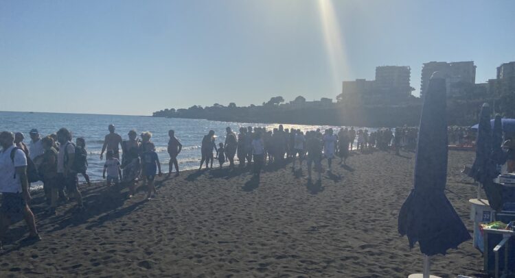 Splendida iniziativa sulle spiagge di Torre Annunziata dove i bagnanti si sono uniti in una catena umana lungo la riva.
