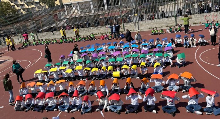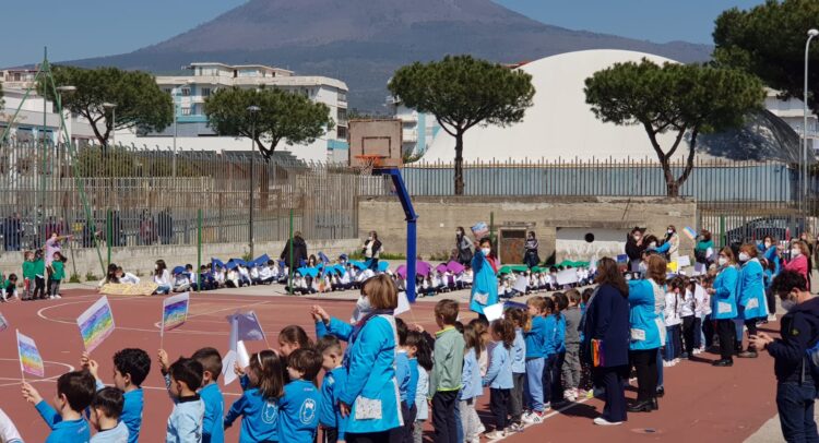 Nel campetto intitolato ad Alberto Cirillo, proprio questa mattina, gli alunni hanno disegnato “La Pace”. Un percorso con gli scolari delle elementari, ai quali si sono aggiunti anche quelli della scuola dell’infanzia, coordinati dalla dirigente Lucia Massimo, dalla vicaria Sandra Ciliberti e dagli istruttori dell’associazione Vesuvio Oplonti Volley Emy Celotti e Lucia Esposito.